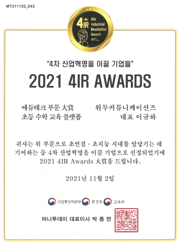 2021 4IR AWARDS 대상 페이지 정보 작성자 WeDu 댓글 0건 조회 8,260회 작성일 21-12-31 13:01 본문 2021-11-02 2021 4IR AWARDS 대상 머니투데이 List Previous2021 소년한국 우수 어린이 도서 22.01.06 Next2020 소년한국 우수 어린이 도서 선정 21.12.31