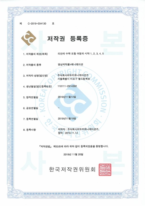 [한국/저작권] 리안의 수학 모험 여정의 시작 1,2,3,4,5 페이지 정보 작성자 WeDu 댓글 0건 조회 4,314회 작성일 21-12-31 12:36 본문 2019-11-20 저작권 C-2019-034130 영상저작물>애니메이션 List Previous[한국/저작권] OLL KIDS/MATH 21.12.31 Next[한국/저작권] 리안의 수학 모험 애니메이션 OST 19.11.25