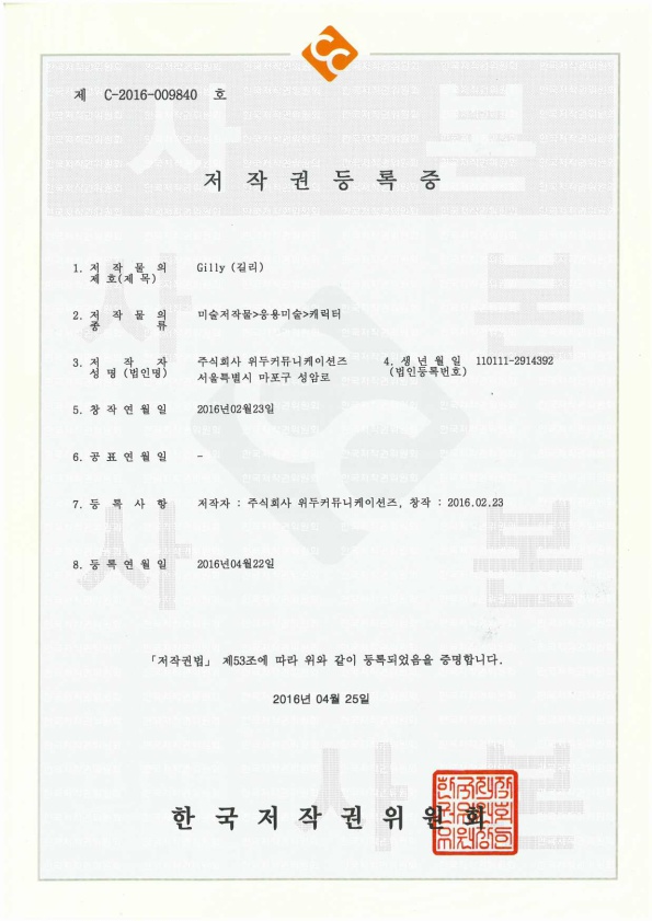 [한국/저작권] 길리 페이지 정보 작성자 WeDu 댓글 0건 조회 4,581회 작성일 19-05-30 19:07 본문 2016-04-22 저작권 C-2016-009840 길리 / 미술저작물>응용미술>캐릭터 List Previous[한국/저작권] 나무트 19.05.30 Next[한국/저작권] 리안의 수학 모험 19.05.30